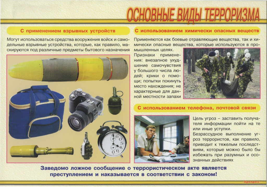 В качестве маскировки для взрывных устройств террористами могут использоваться обычные бытовые предметы: коробки, сумки, портфели, сигаретные пачки, мобильные телефоны, игрушки.