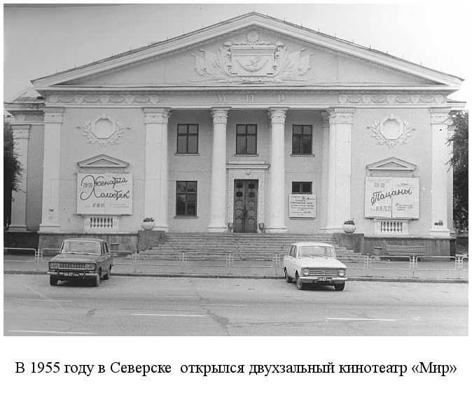 в Северске открыт двухзальный кинотеатр «Мир» на 600 мест (1955)