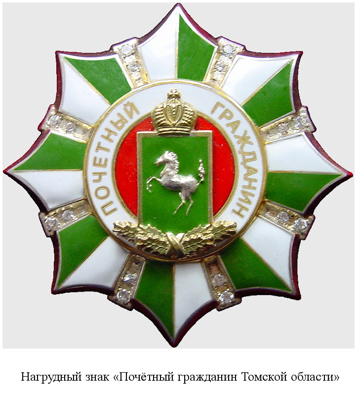 - Почетное звание «Почетный гражданин города Томска». – Текст : непосредственный // Томск 2015: события и люди : ежегодник / [над кн. работали: Т. В. Домнич (текст) и др.]. – Томск, 2016. – С. 51–56. – Издание из фонда ТОУНБ им. А. С. Пушкина.