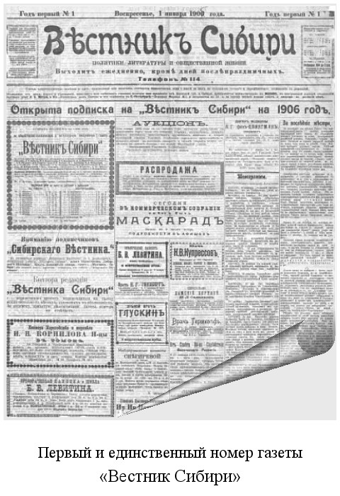 в Томске вышел первый и единственный номер газеты «Вестник Сибири» (1906)