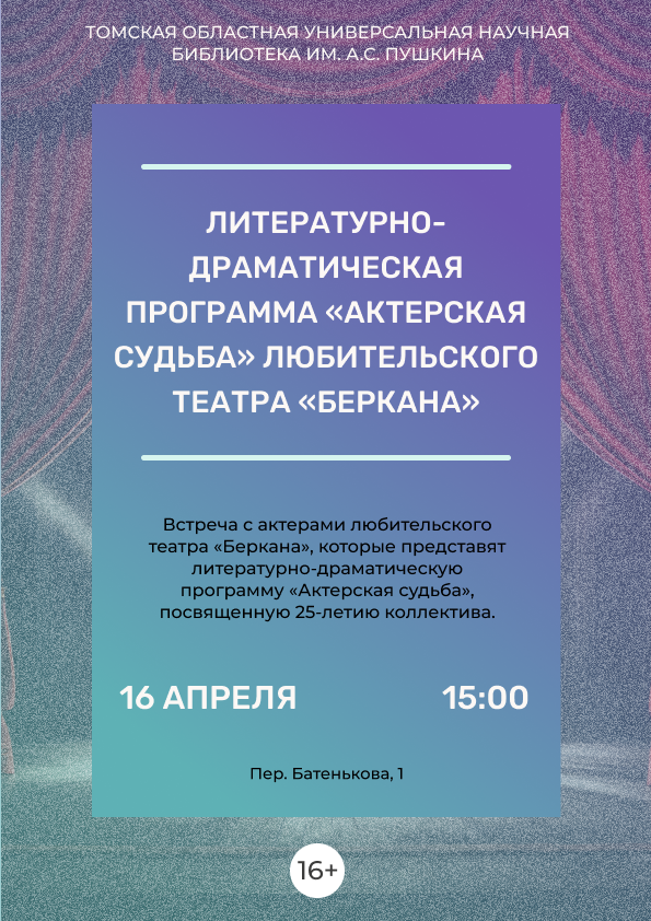 Литературно-драматическая программа «Актерская судьба» любительского театра «Беркана» (16+)
