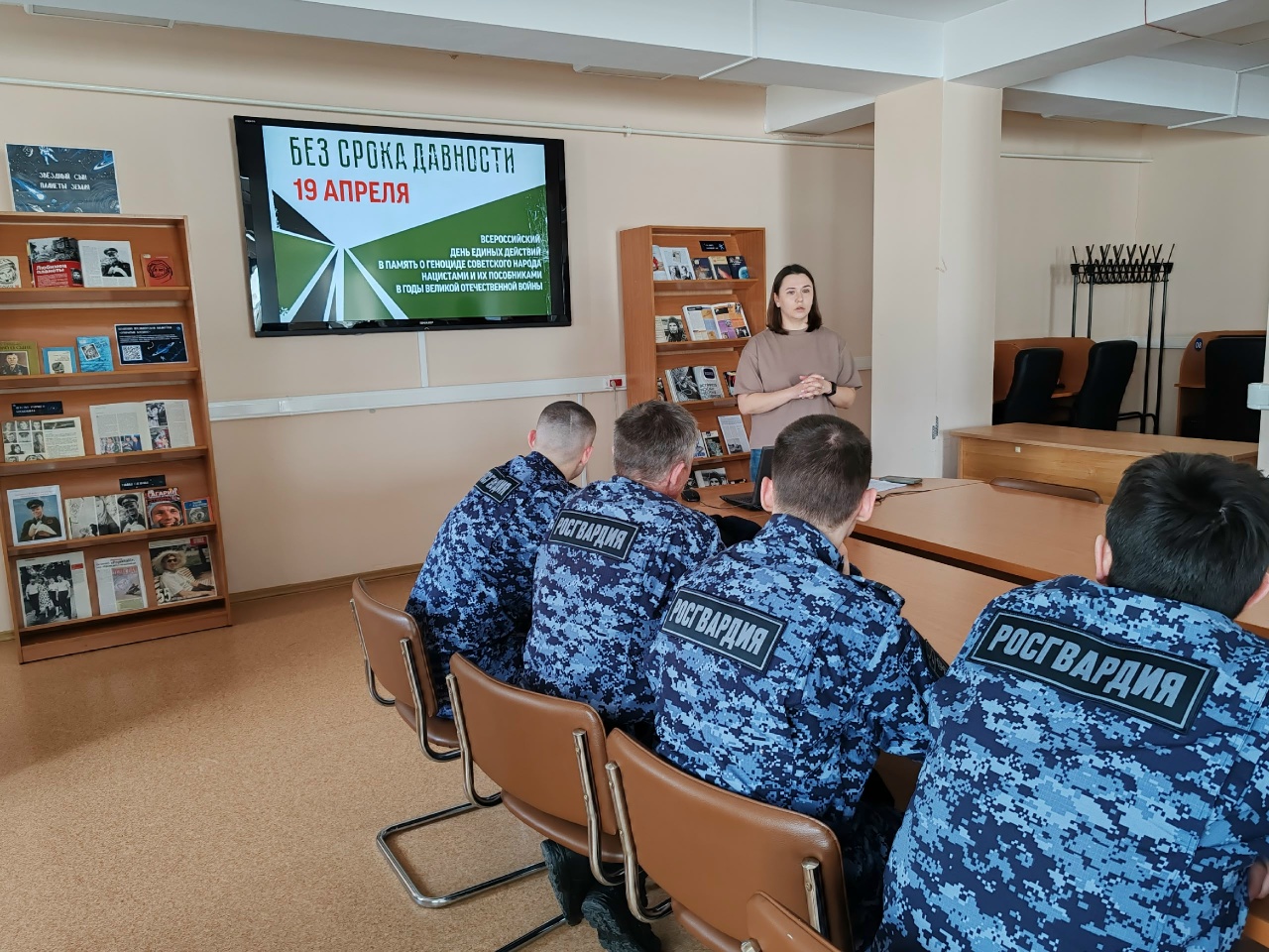 2 апреля 2026 года специалист Томского регионального центра Президентской библиотеки Елена Бажина провела мультимедийный урок «Без срока давности» для группы стажеров Управления Росгвардии по Томской области. Встреча была приурочена ко Дню единых действий в память о геноциде советского народа нацистами и их пособниками в годы Великой Отечественной войны 1941–1945 годов.