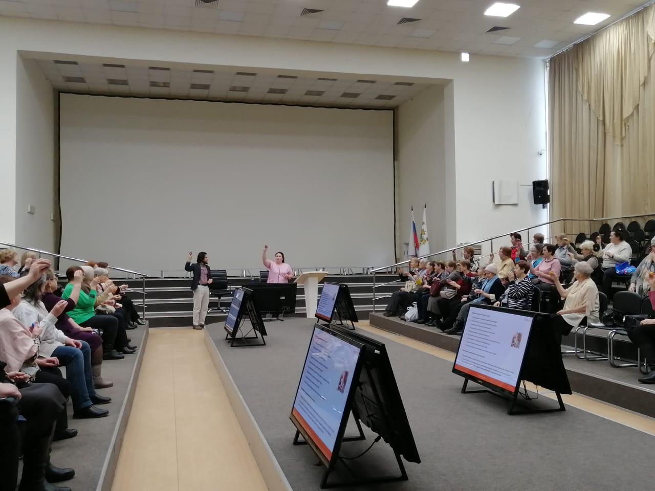 Разговор начался с определения факторов, способствующих длинной счастливой жизни. Слушатели поделились своими «рецептами» жизни. Марк Владимирович прокомментировал действия пенсионеров по укреплению здоровья. Особое внимание специалист уделил компрессионному трикотажу, который используется для поддержки вен, прежде всего, ног.