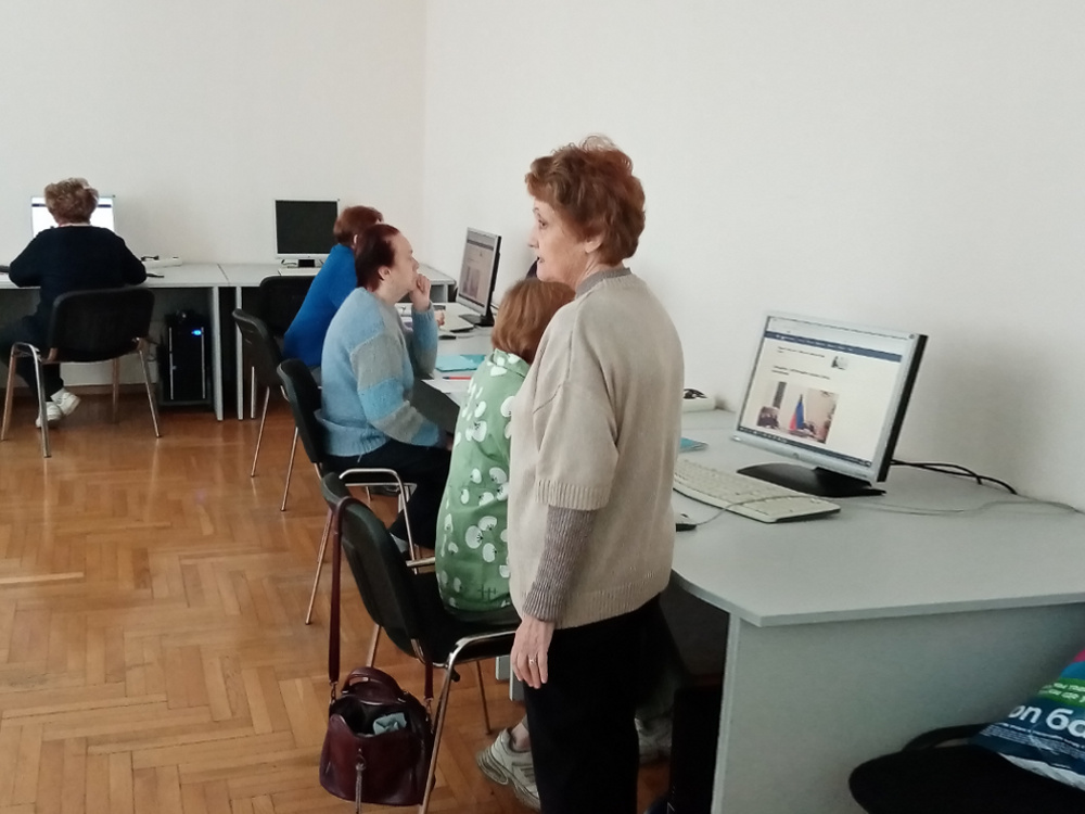 С огромным интересом и желанием осваивают слушатели работу с электронными ресурсами библиотеки. Проводят поиск редких изданий о Томске, просматривают старинные газеты, любуются коллекциями красивых открыток. Знакомятся с сервисами Единого портала государственных и муниципальных услуг (функций), с услугами и сервисами сайта НБКИ — проверки кредитных историй и другими сервисами государственных услуг. Постигают общение в социальных сетях, работу с антивирусными программами, основы безопасной работы в сети Интернет.