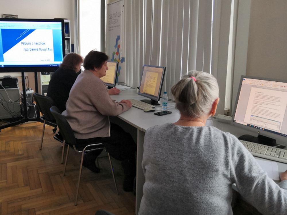 В секторе информационных технологий и сервисов для группы слушателей старшего поколения проходило обучение «Работа с текстом в программе Microsoft Word». Группа была сформирована из слушателей, уже прошедших обучение в рамках просветительской программы, направленной на повышение компьютерной и мобильной грамотности.