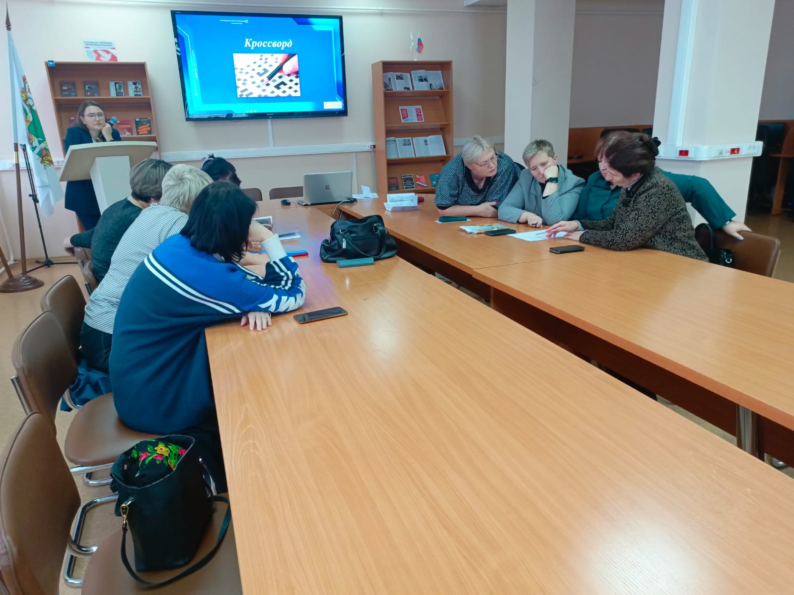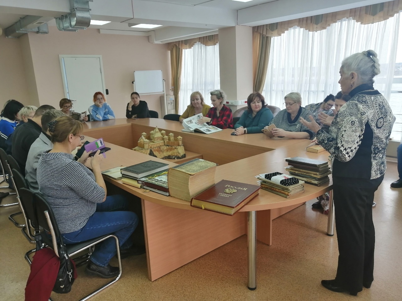Главный библиотекарь центра, Анна Евгеньевна, провела экскурсию по Томской областной универсальной научной библиотеке им. А. С. Пушкина. Особое внимание было уделено историко-краеведческому отделу, в котором слушателям рассказали о краеведческих ресурсах и показали некоторые сокровища, хранящиеся в секторе редкого фонда.