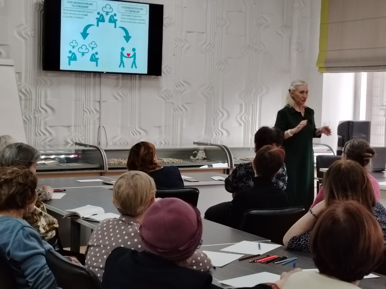 3 мая 2024 г. в читальном зале Пушкинки собрались люди старшего поколения на встречу с Галиной Владимировной Бутиковой — практикующим коучем, психологом. Встреча прошла в рамках «Школы психологической молодости».