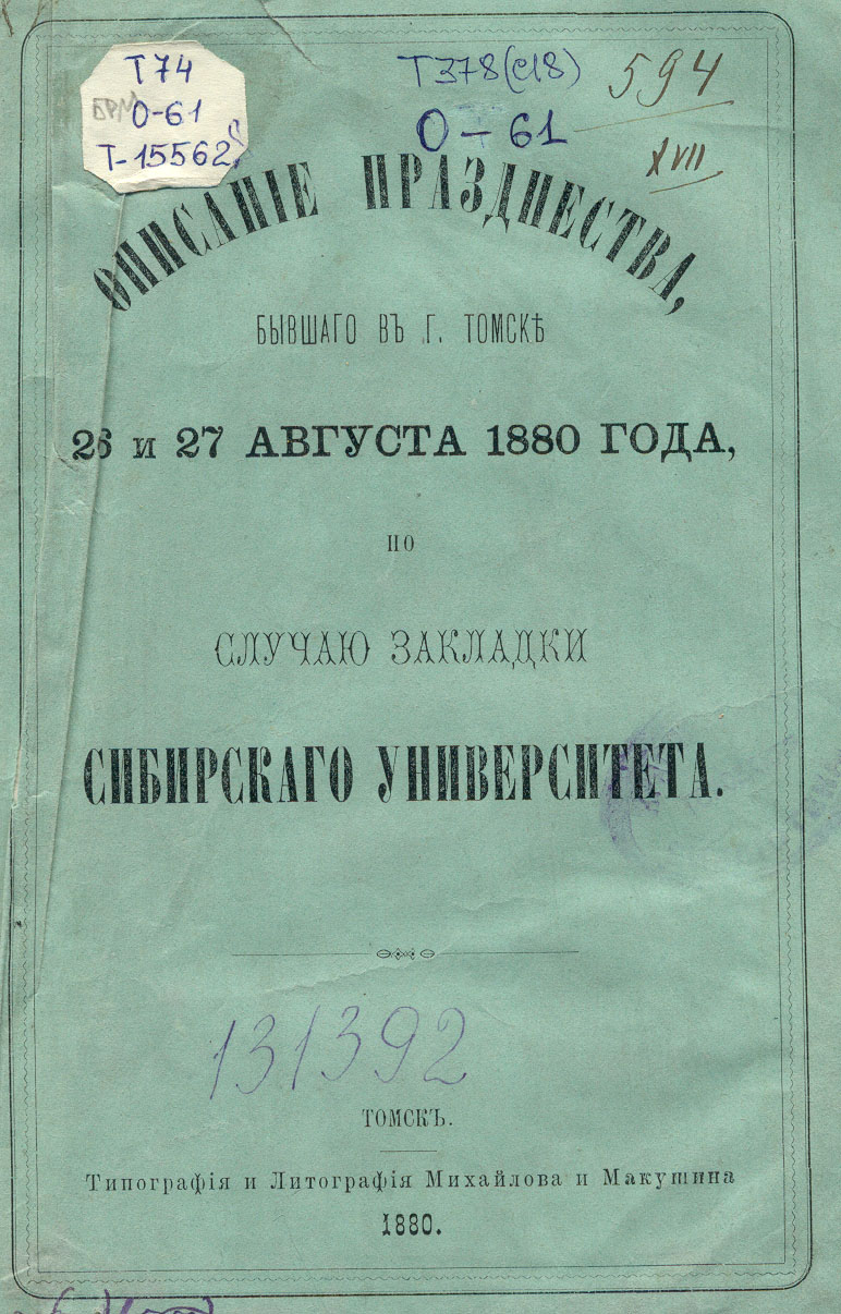 145 лет назад, в сентябре 1880 года, томичи торжественно отметили закладку университета. Преосвященный Петр, епископ Томский и Семипалатинский, совершил духовный обряд освящения места, после которого положил в основание университета первый камень, а жители города клали рядом с камнем золотые, серебряные и медные монеты.