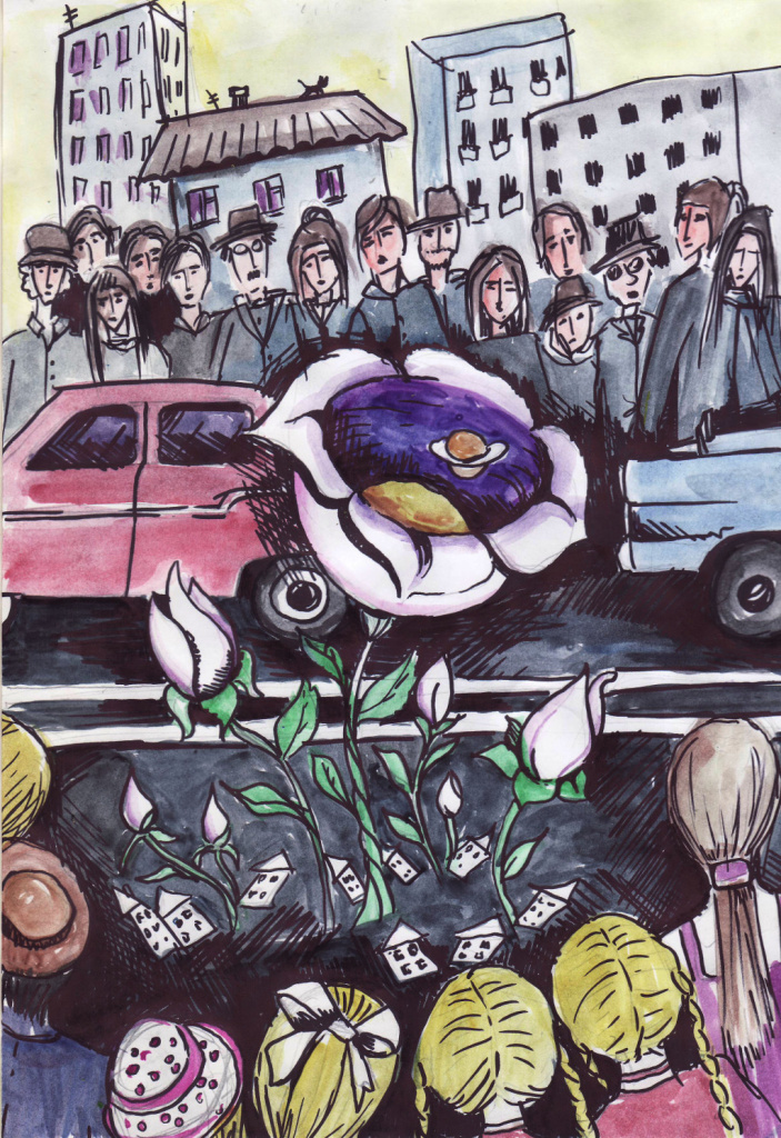 Прохорова Анна. Покорители глубокого космоса (иллюстрация к рассказу «На асфальте города», 1-е место в средней группе)
