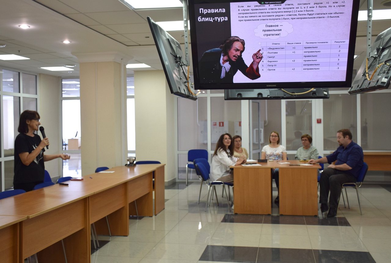 Историческая игра была посвящена событиям XVIII века и состояла из шести раундов разных форматов: Разминка, Эпоха в искусстве, От классицизма до сентиментализма, Пятый – лишний, Историческое лото и Блиц-тур. Участники игры вспомнили известных художников и архитекторов, полководцев и флотоводцев, государственных и политических деятелей, а также важнейшие события эпохи. Турнир получился очень познавательным и интересным: вспомнили школьную программу, познакомились с работой коллег из других регионов и просто отлично провели время!