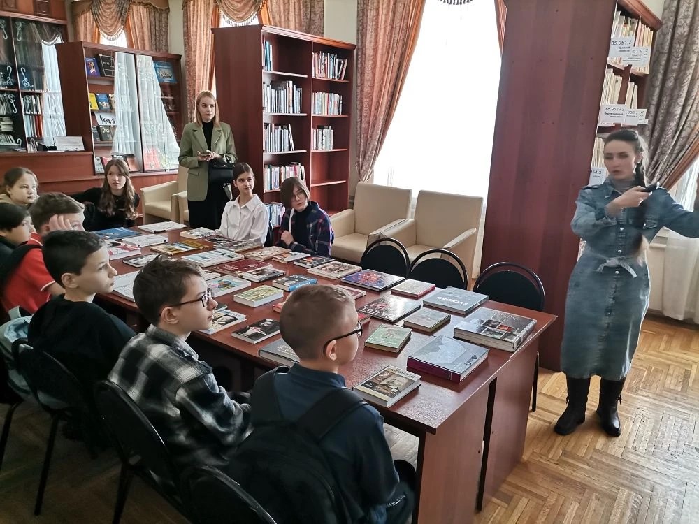 Отдел литературы по искусству погрузил экскурсантов в мир эстетики и духовности. С помощью яркой презентации экскурсовод познакомила их с основными видами искусств: театр, балет, танец, живопись, музыка. Ученики смогли не просто услышать о шедеврах, но и увидеть их воочию — через иллюстрации и репродукции в изданиях.