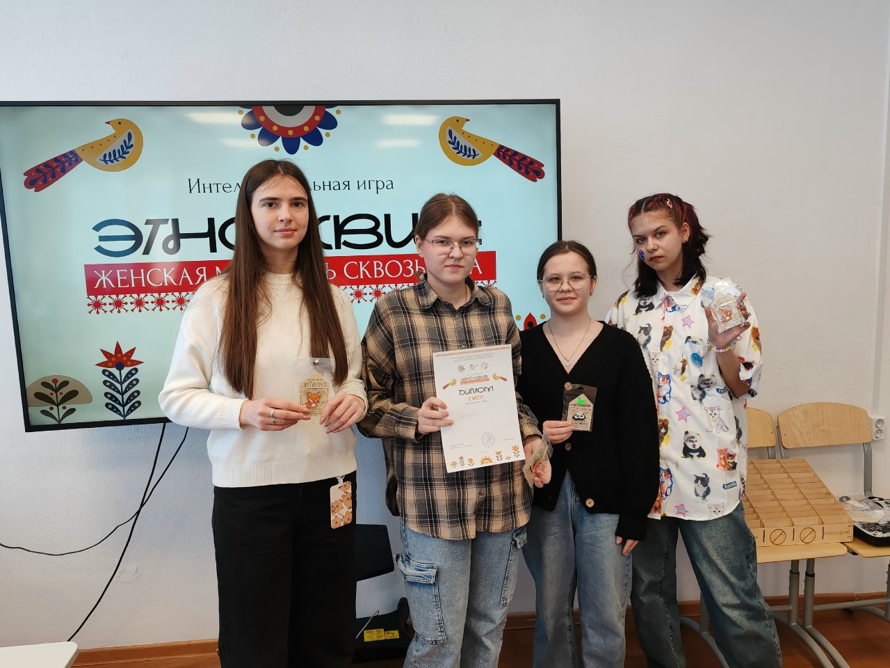 Участницы квиза отгадывали значение узоров на ткани, восстанавливали национальные рецепты народов России по памяти и узнавали песни по первым строкам, открывая для себя новые грани традиционной культуры.