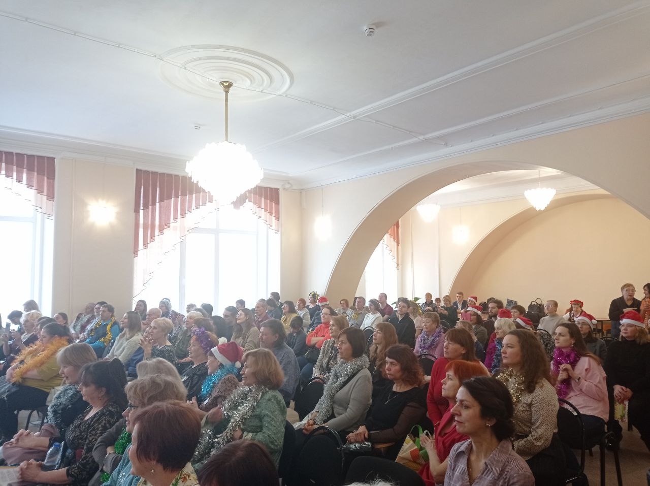 20 декабря 2025 в актовом зале Пушкинки на Батенькова, несмотря на морозную погоду за окном, было многолюдно, тепло и весело. Зрители собрались на ставший уже традиционным Новогодний капустник, подготовленный сотрудниками отдела литературы на иностранных языках и языках народов России вместе с преподавателями-волонтерами и участниками 15-ти языковых клубов.