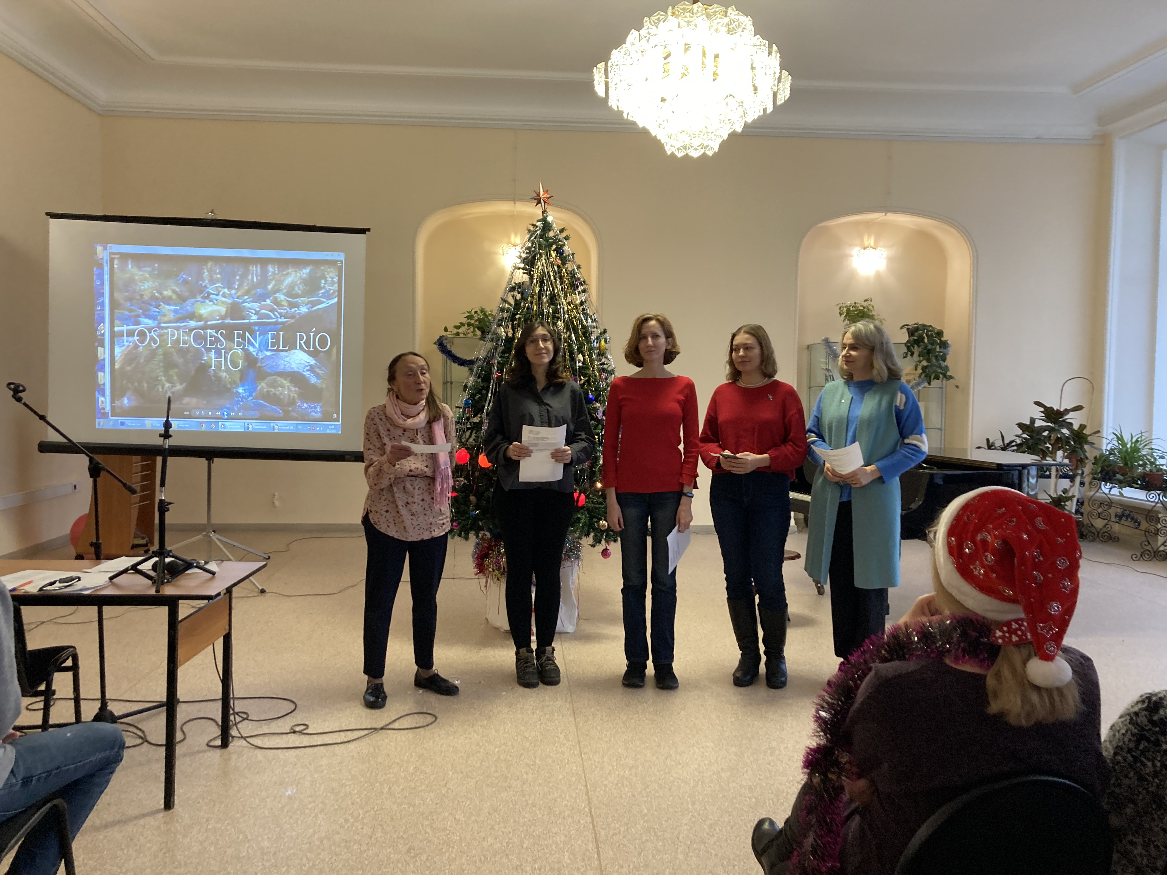 В заключение выступающие и гости вытянули по маленькой открытке с новогодними пожеланиями на иностранных языках. Каждый ушел с отличным настроением.