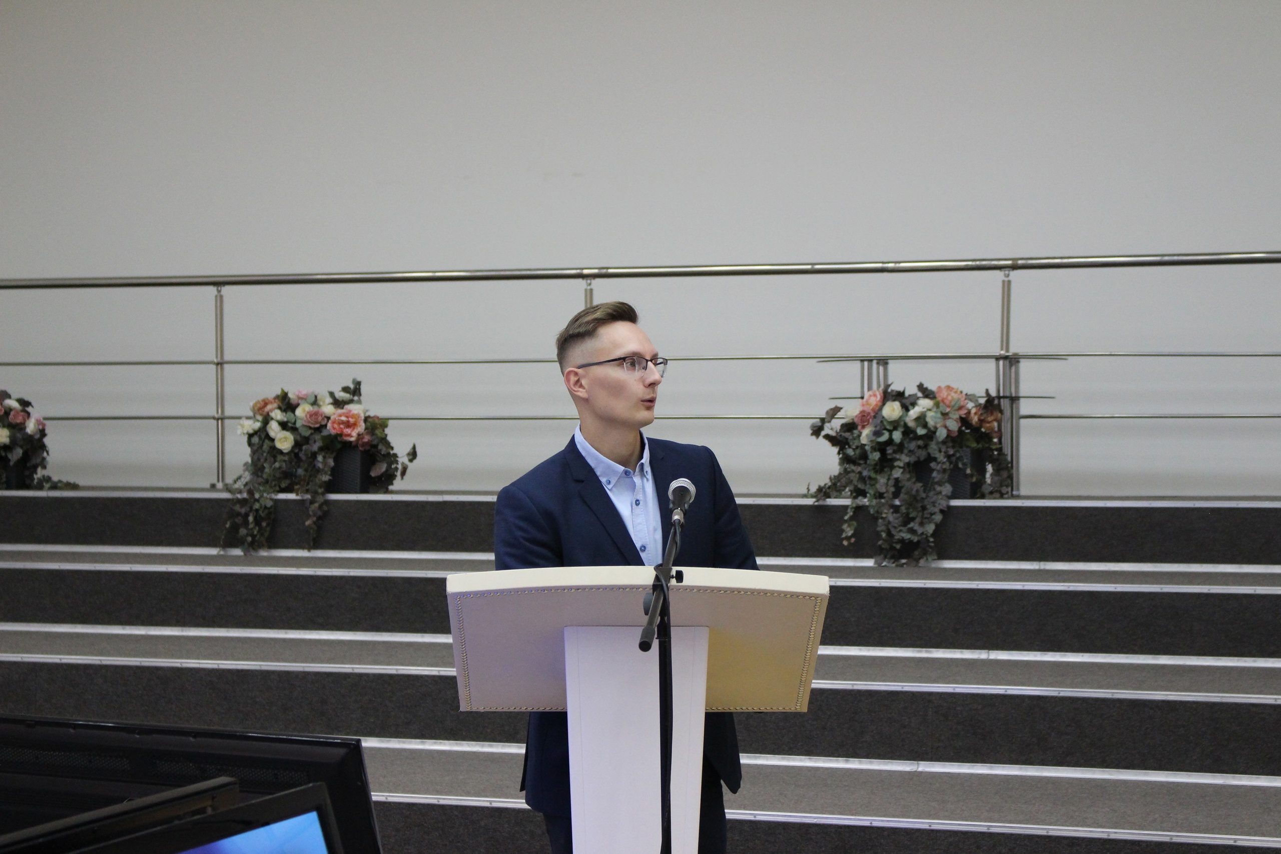 Иван Андреевич Дружинин, менеджер отдела по работе с талантами и профориентации Национального исследовательского Томского государственного университета (ТГУ), рассказал о льготах, которые получат призеры и финалисты олимпиады «Россия в электронном мире» при поступлении в ТГУ. Он познакомил присутствующих с деятельностью отдела, который представлял, а также рассказал о приоритетных олимпиадах университета, дающих хорошие бонусы при поступлении в ТГУ.