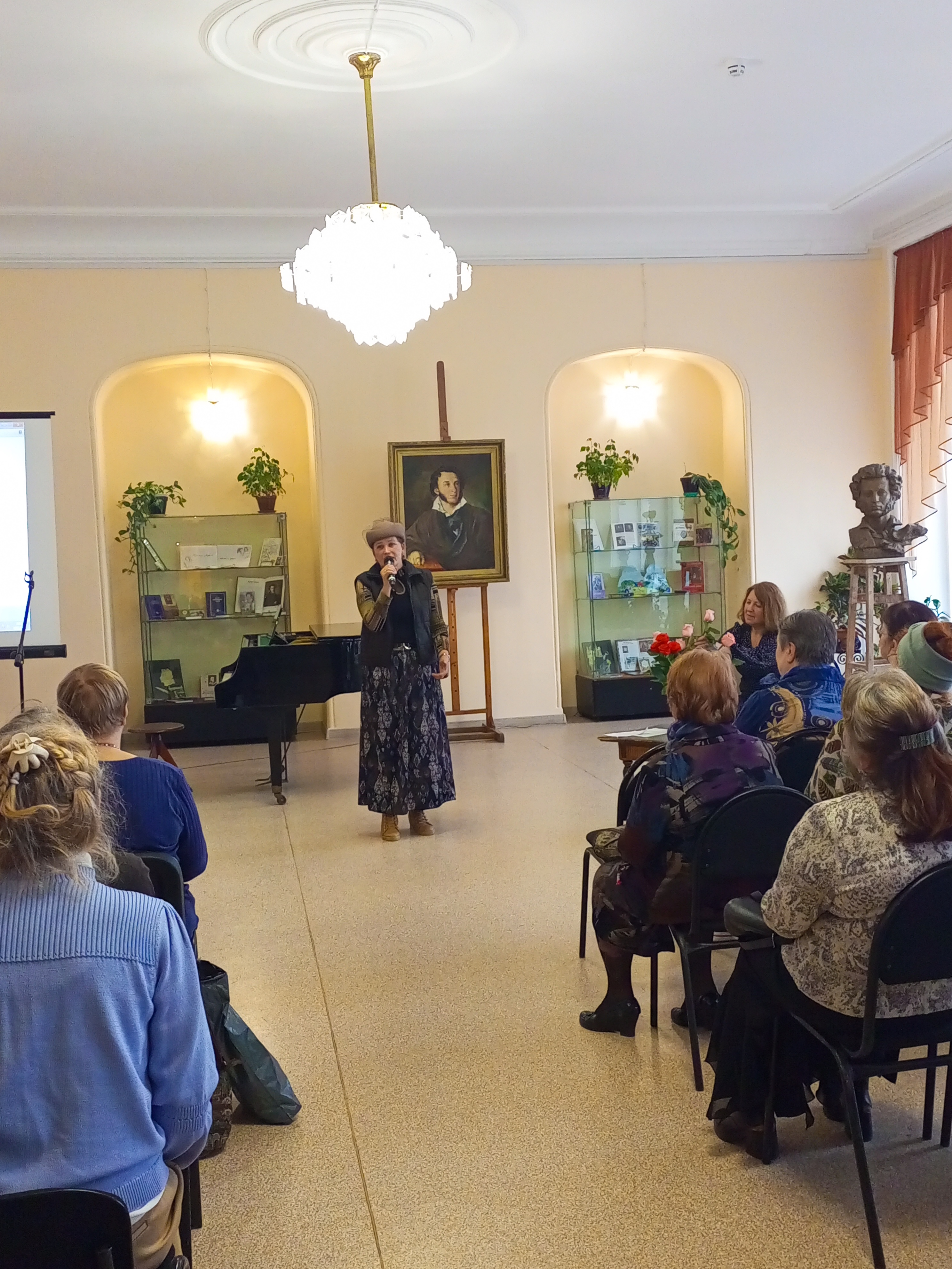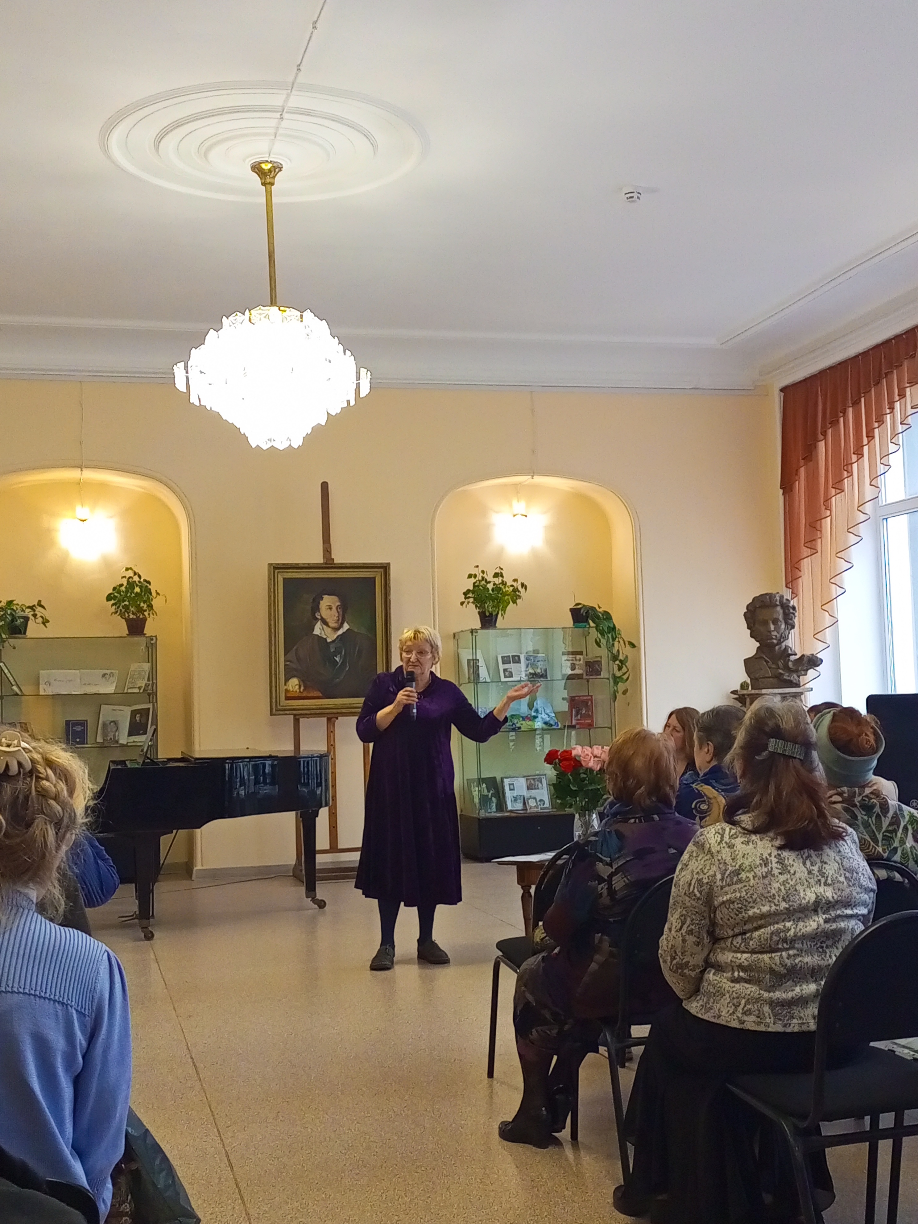 Поэт О. М. Кортусова начала вечер со строчек из стихотворения Игоря Северянина «Пушкин»: