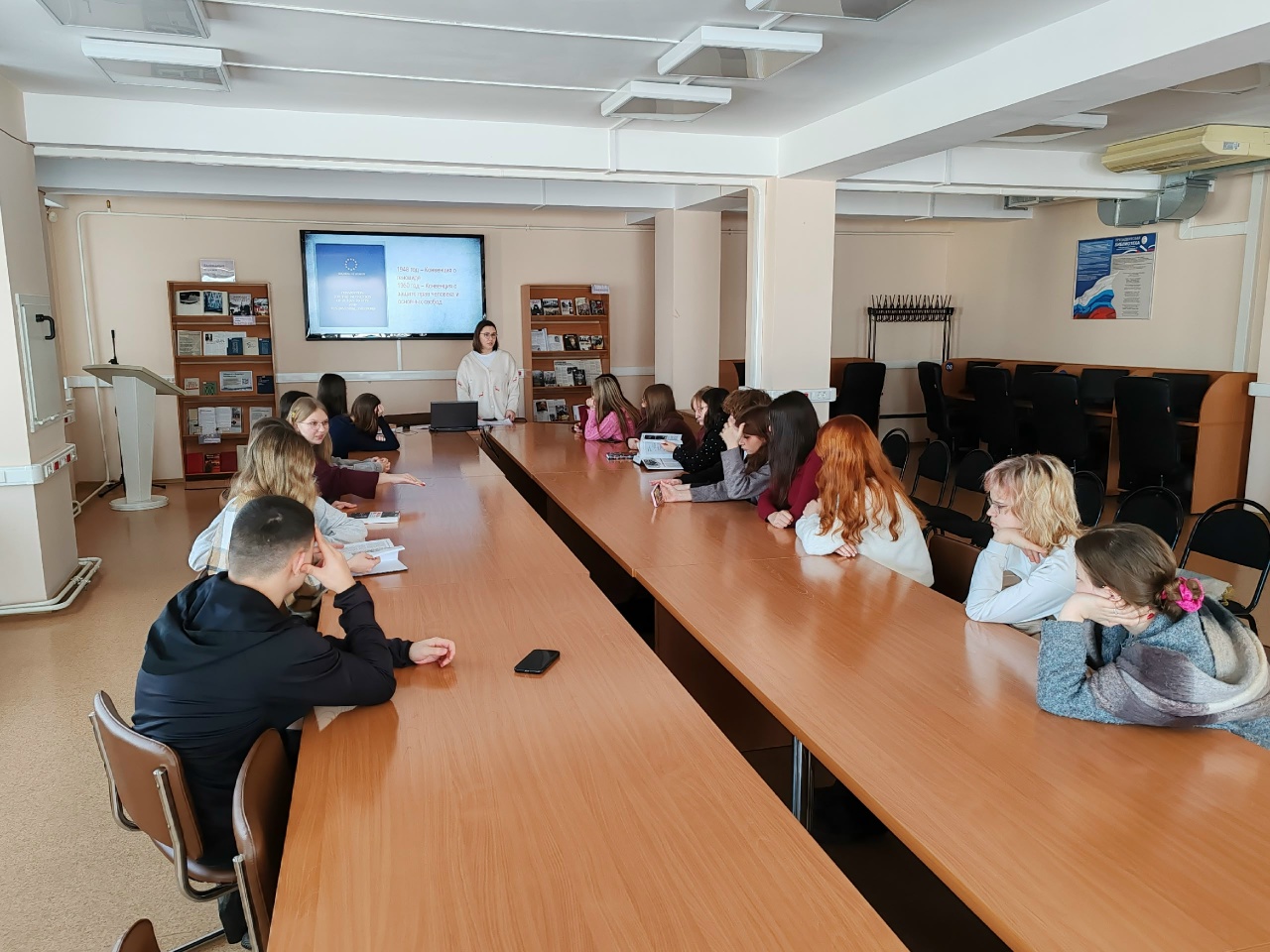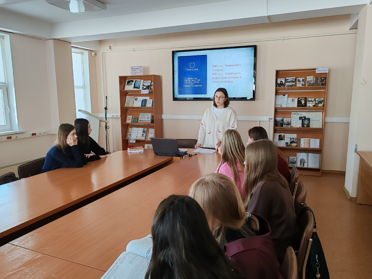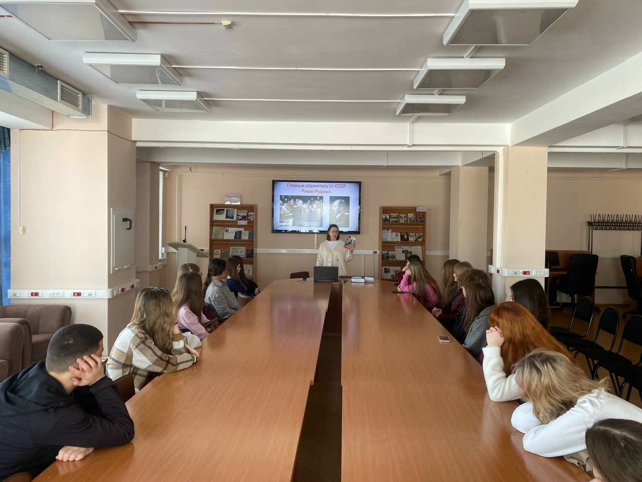 Для углубленного изучения Нюрнбергского процесса был проведен обзор литературы из фондов Томской областной универсальной научной библиотеки им. А. С. Пушкина и Президентской библиотеки. Были представлены исторические и художественные издания, а также фрагменты кинохроники.