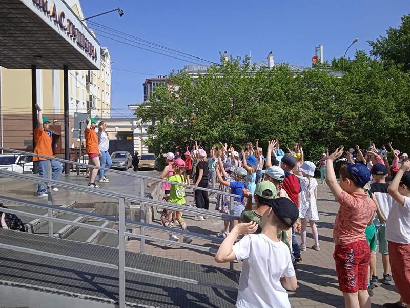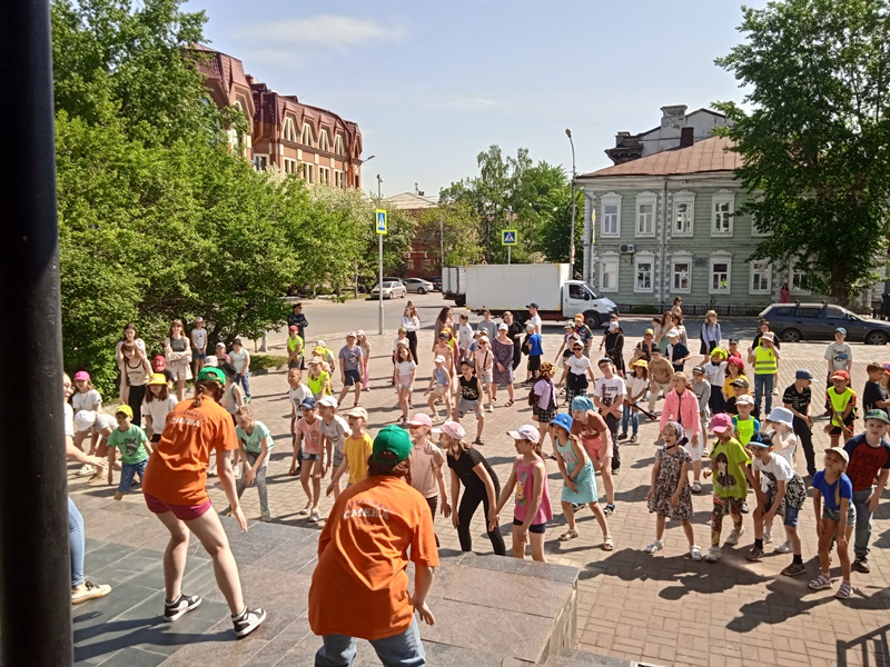 1 июня 2023 г. на площади перед библиотекой на праздник, посвященный Международному дню защиты детей, собрались более 150 юных томичей из пришкольных лагерей города.