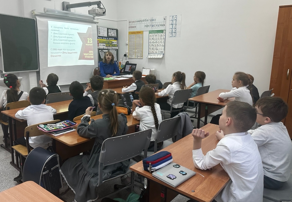 Учащиеся узнали интересные факты из военной истории. Например, что первый праздник в честь защитников Отечества, 23 февраля 1919 года, когда были собраны посылки бойцам Красной Армии, назывался Днем Красного подарка; знаменитые ракетные установки «Катюши» были прозваны гитлеровцами «сталинскими органами», так как напоминали врагам по внешнему виду и звуку этот музыкальный инструмент.