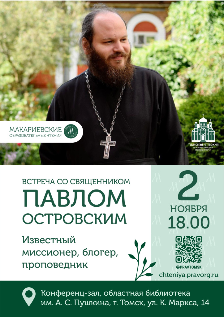 С томичами встретится иерей Павел Островский (г. Москва, известный блогер и миссионер).