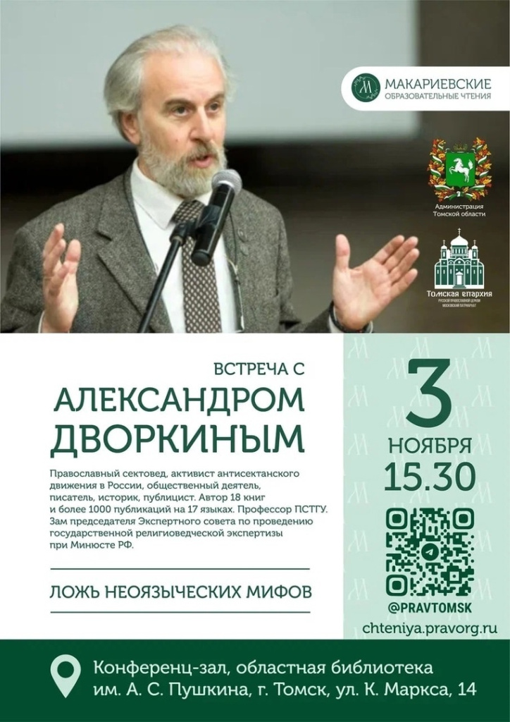 «Ложь неоязыческих мифов»: встреча с жителями Томска православного сектоведа Александра Дворкина (г. Москва, религиовед, писатель, историк, публицист).