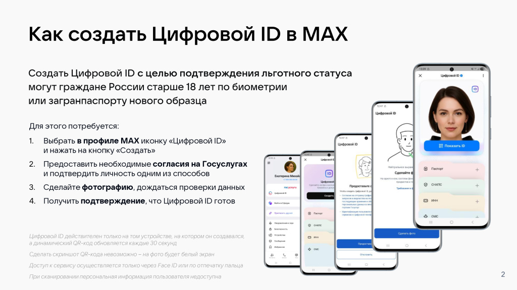 С 22 февраля люди с инвалидностью, студенты, члены многодетных семей и пенсионеры смогут бесплатно или со скидкой посещать учреждения культуры, используя цифровой ID в национальном мессенджере MAX. К таким учреждениям относятся музеи, театры, концертные площадки и культурно-досуговые центры.