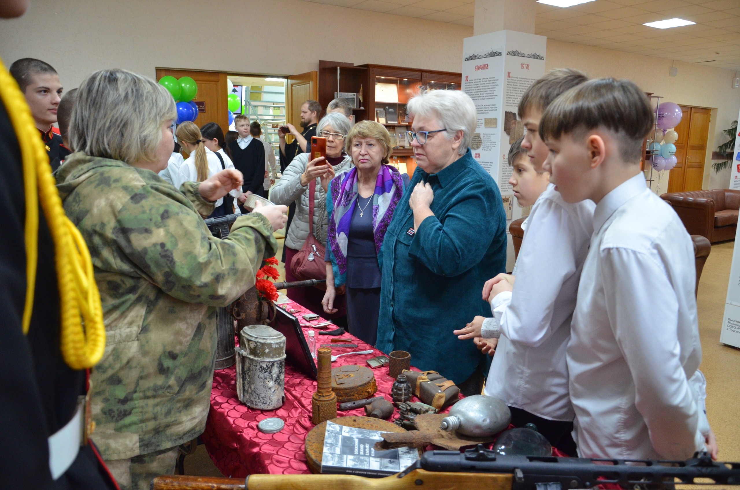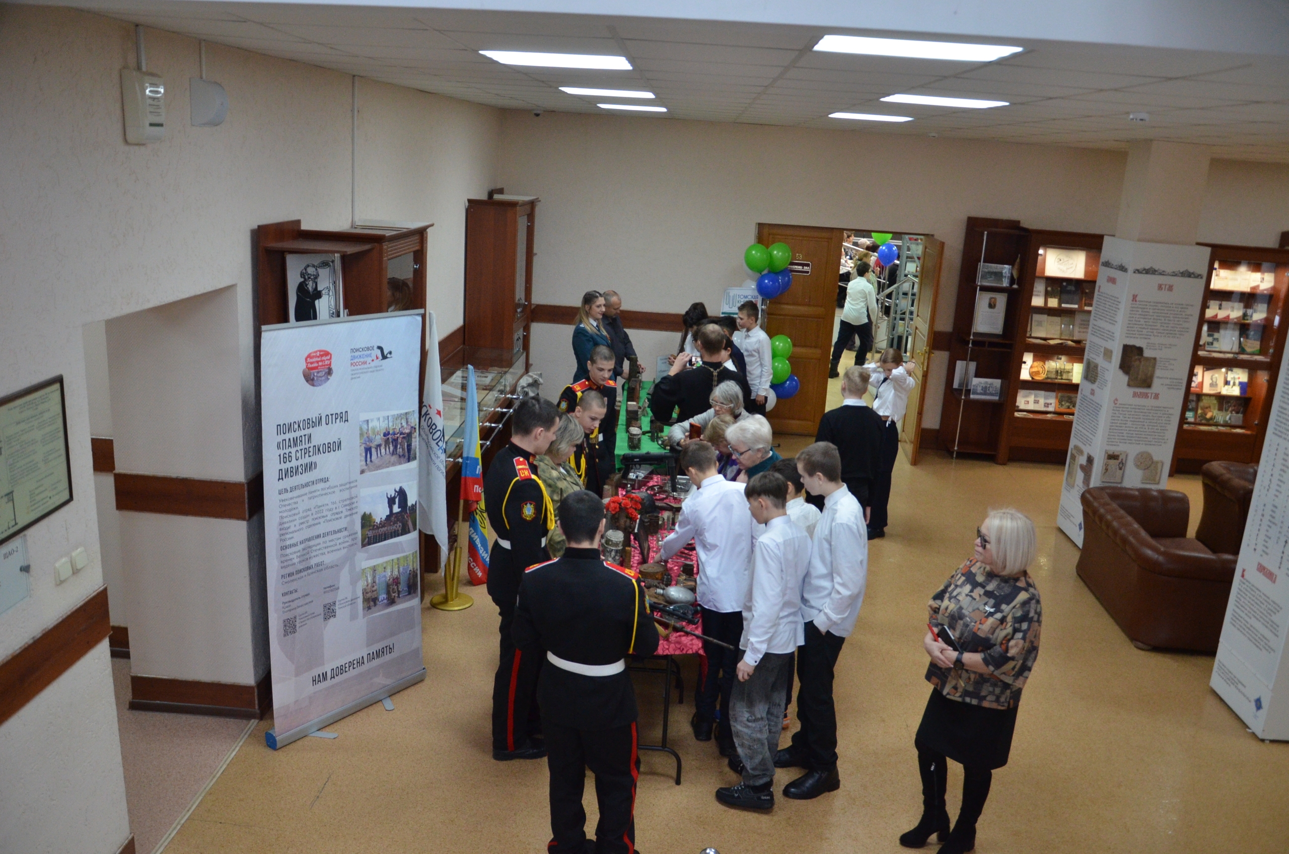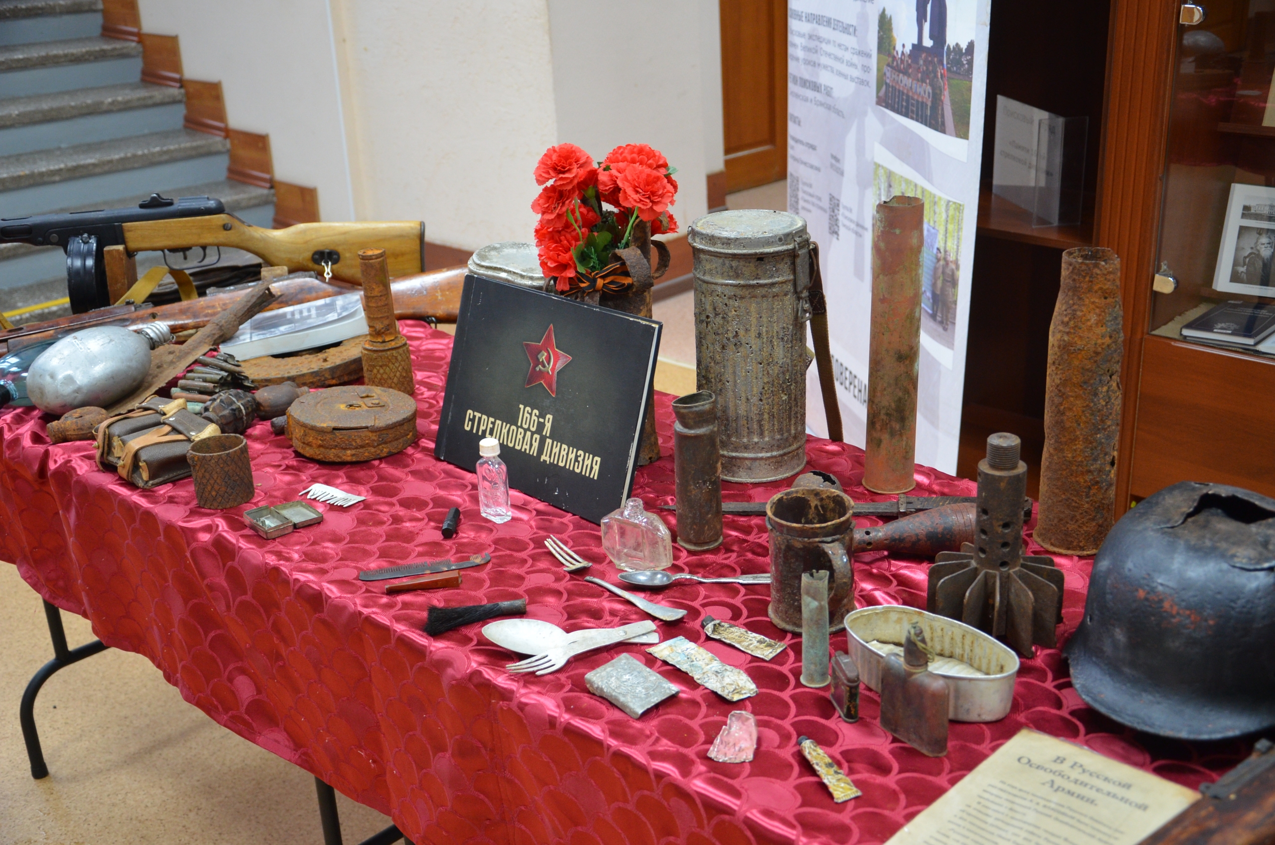 В холле второго этажа была организована выставка артефактов поисковых отрядов «Томич» и «Памяти 166-й гвардейской дивизии».