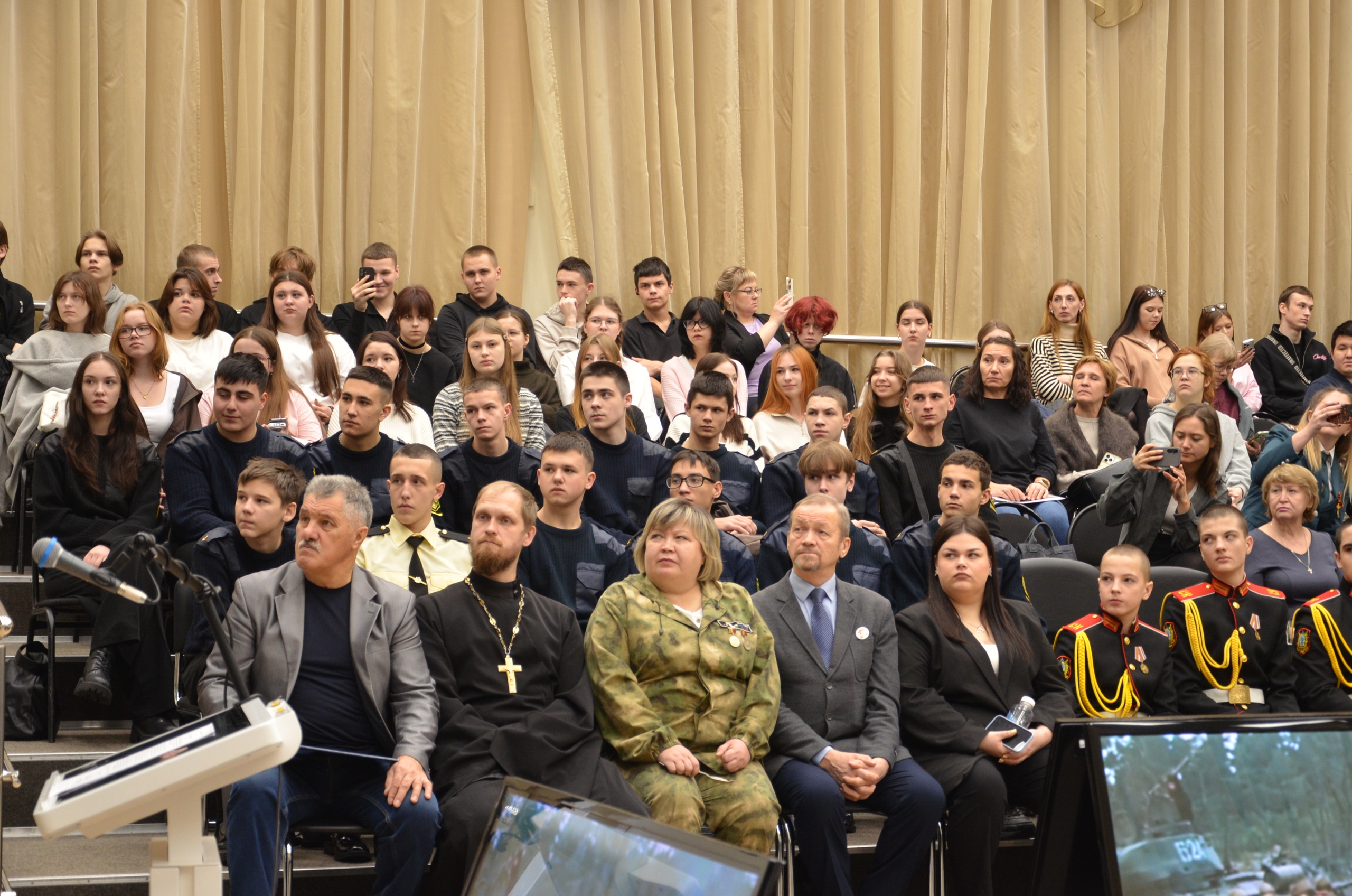 Зал был полон — пришли школьники, студенты, представители патриотических организаций и просто неравнодушные горожане. Атмосфера царила особенная: смесь скорби и гордости, тихой грусти и светлой памяти.