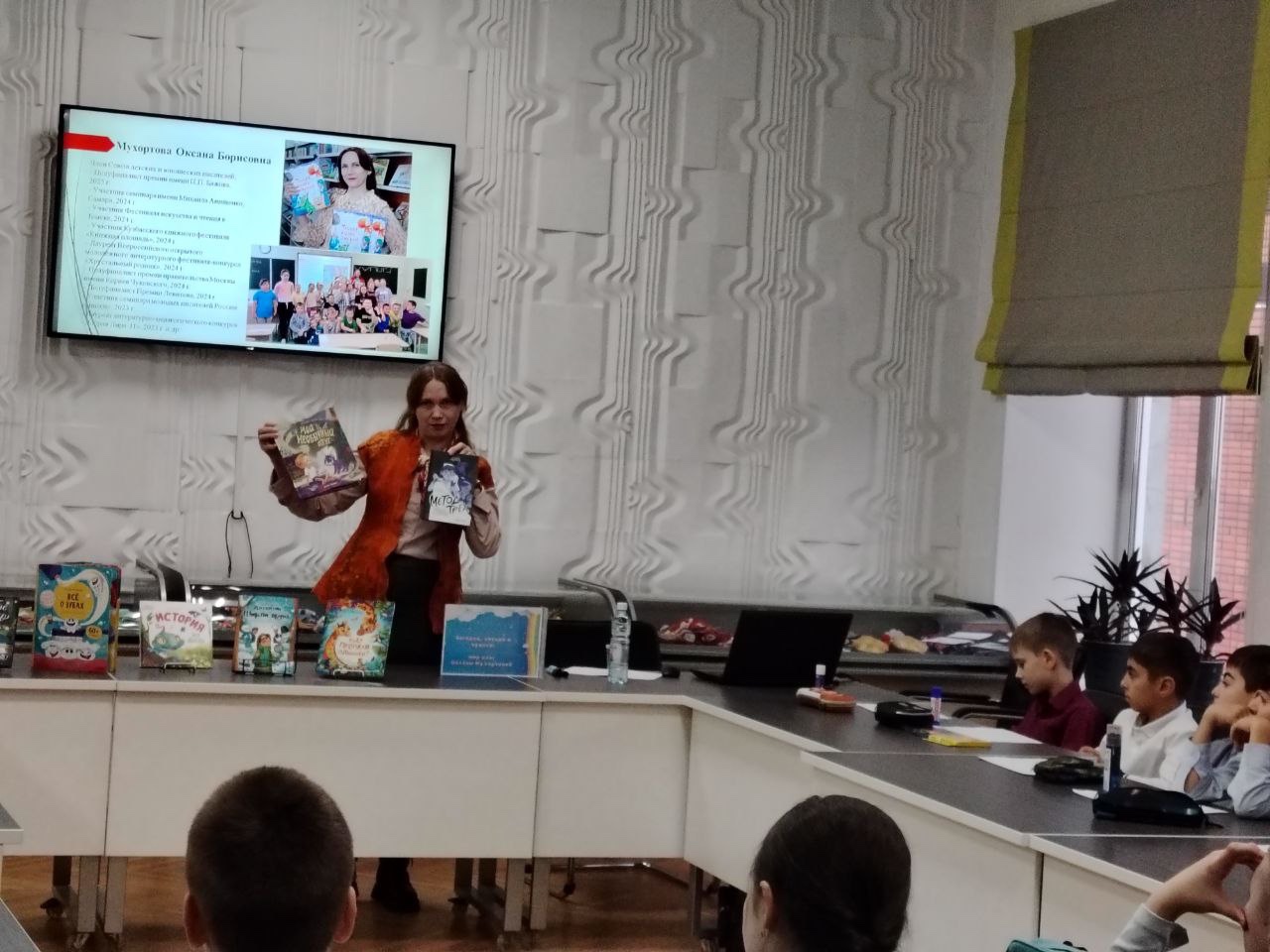 Оксана Мухортова — член Союза детских и юношеских писателей, психолог и многодетная мама — провела мастер-класс «Как создаются книги». Юные читатели узнали, какой путь проходит книга от рукописи до печатного издания. Наглядно показали этапы издательского процесса: редактуру, вёрстку, иллюстрацию и переплёт. Дети с интересом рассматривали образцы материалов и пробовали себя в роли издателей.