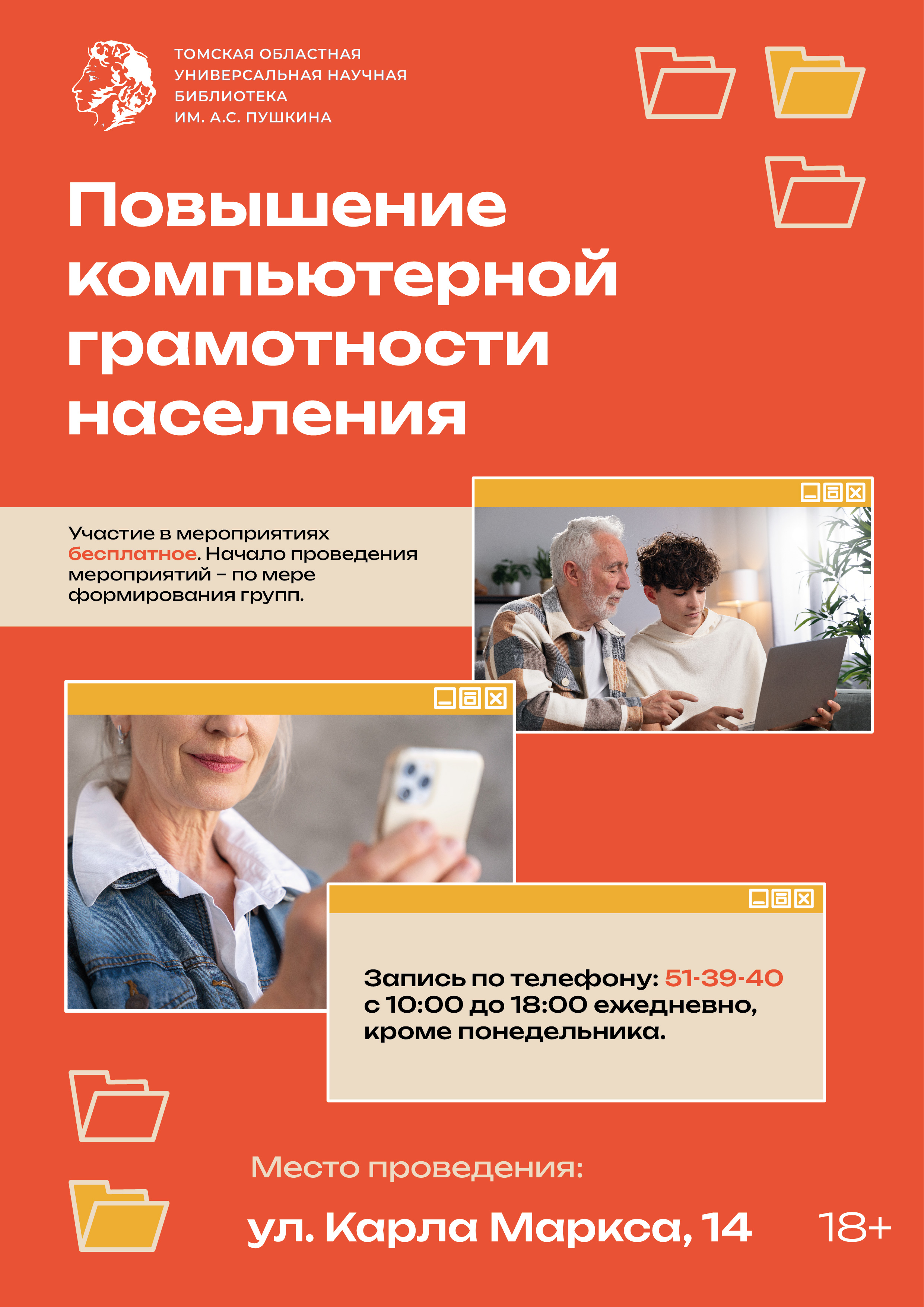 Пушкинка приглашает на мероприятия культурно-просветительских программ, направленных на повышение компьютерной грамотности жителей г. Томска.
