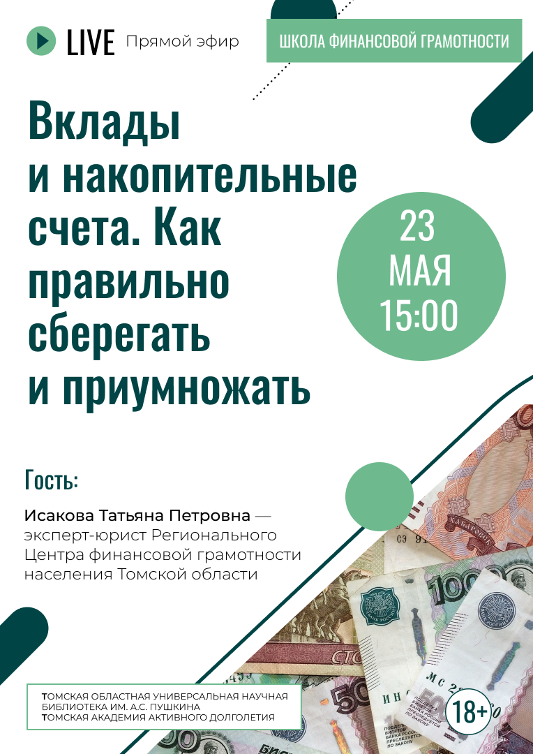 Прямой эфир Школы финансовой грамотности Томской академии активного долголетия (18+)