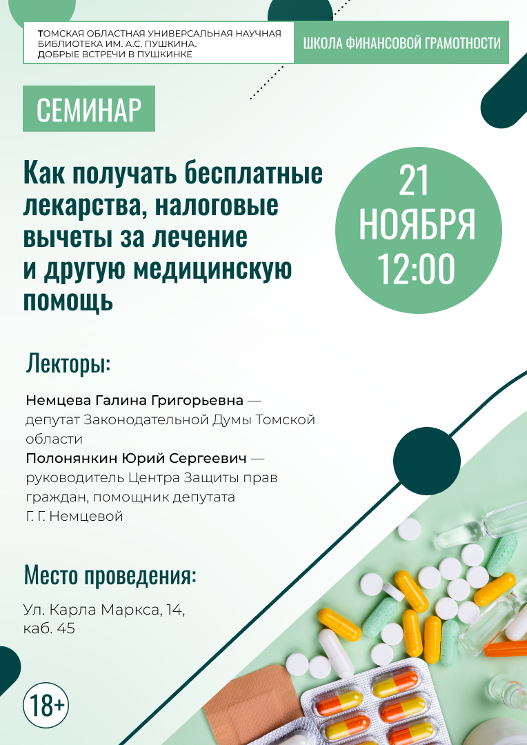 Семинар «Как получать бесплатные лекарства, налоговые вычеты за лечение и другую медицинскую помощь» (18+)