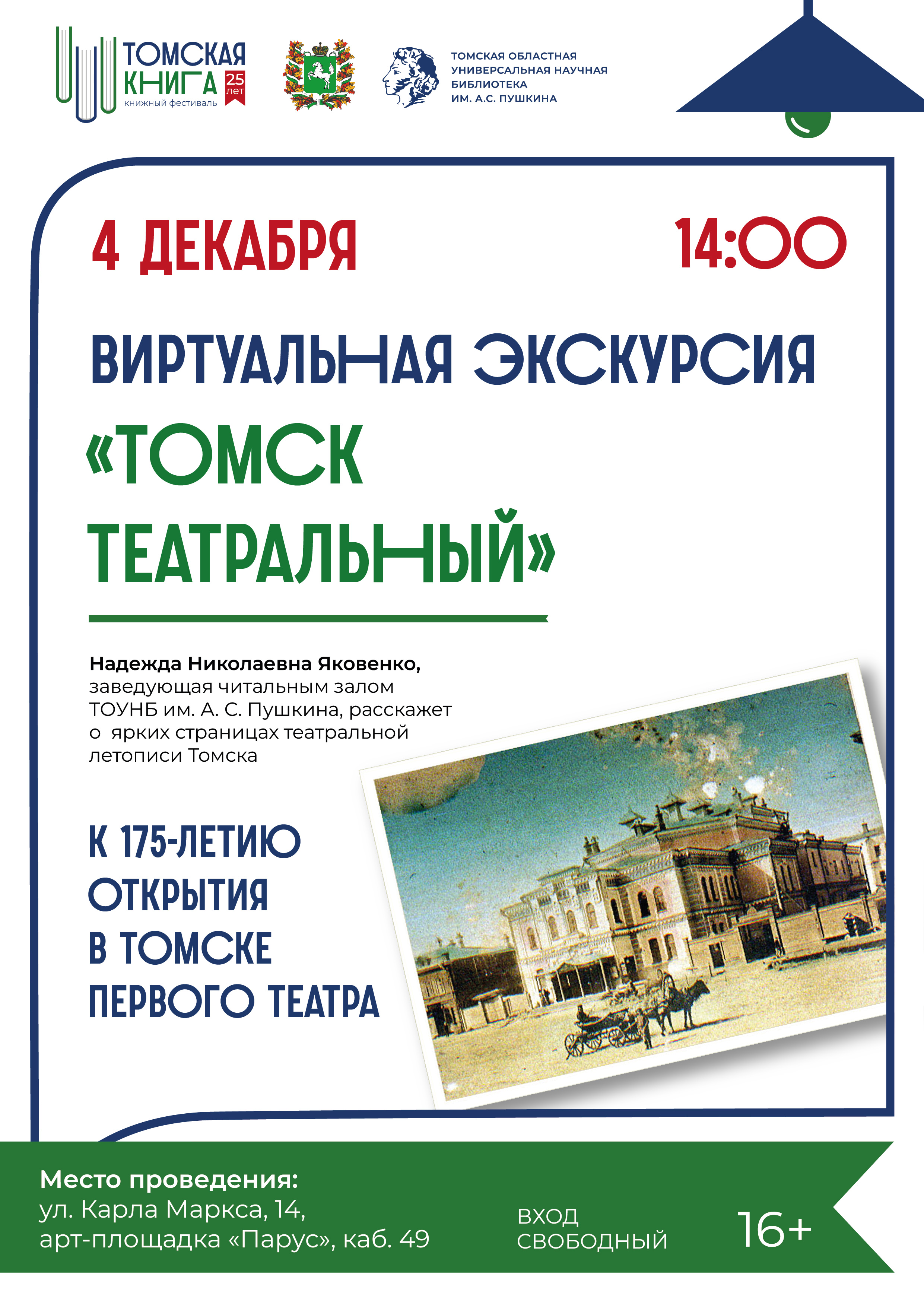 Приглашаем на виртуальную экскурсию «Томск театральный», приуроченную к 175-летию открытия в Томске первого театра.