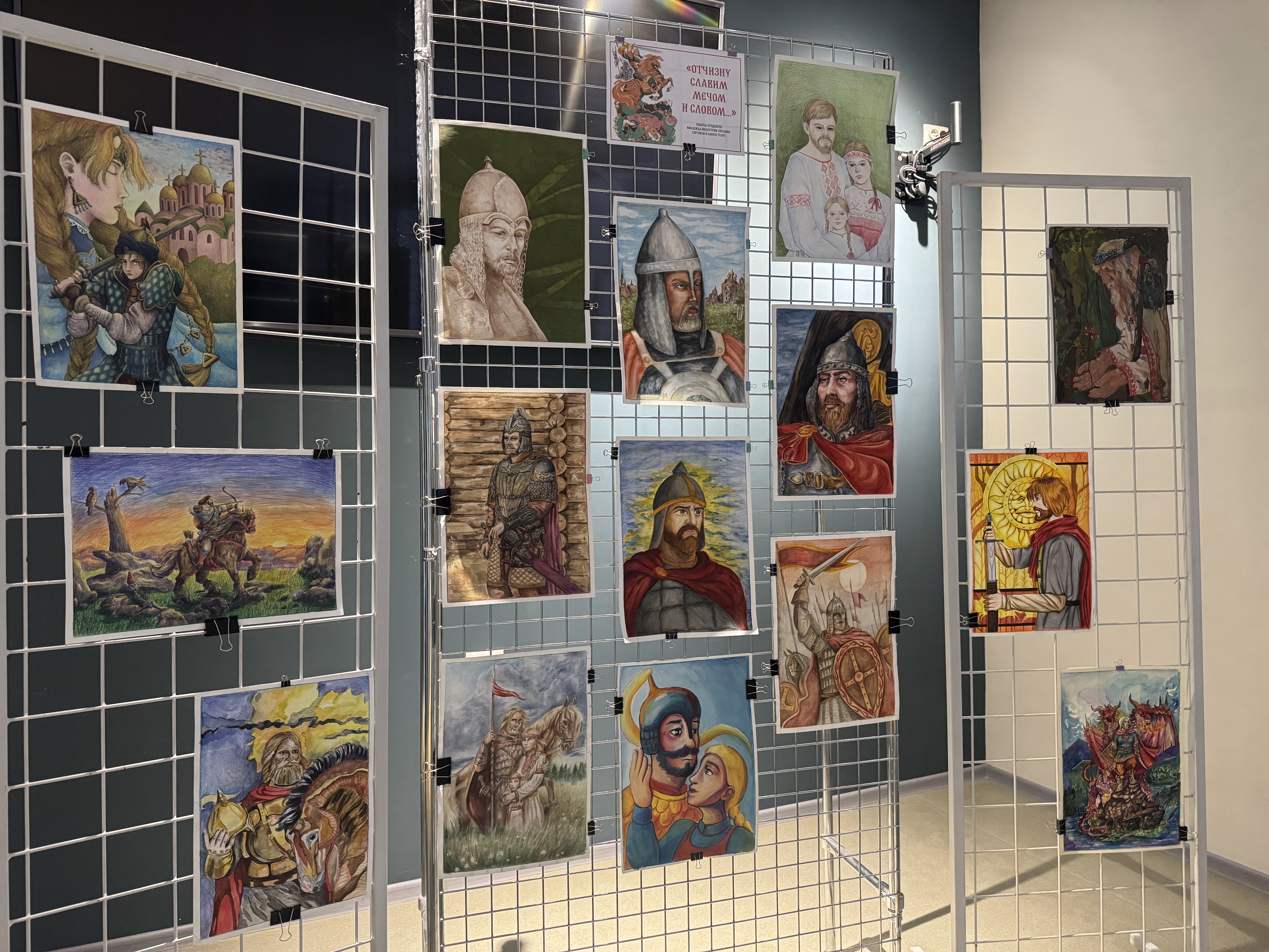 На выставке представлены красочные работы в разных исполнениях — от классических акварелей и графических рисунков до современных техник. Авторами рисунков являются талантливые студенты колледжа индустрии питания, торговли и сферы услуг. Каждый рисунок — это уникальное видение богатырского эпоса, отражение силы, мужества и духа наших предков.