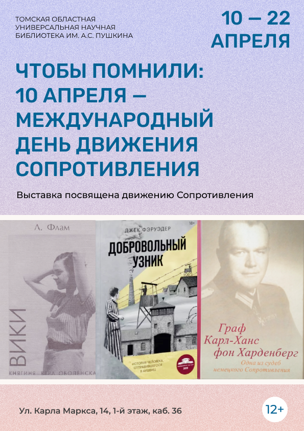 Выставка «Чтобы помнили: 10 апреля – Международный день движения Сопротивления» (12+)