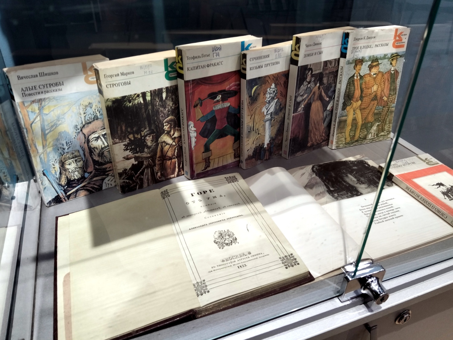 В экспозиции представлены каталоги издательства, художественные произведения, выпускавшиеся как отдельными изданиями, так и в составе книжных серий «Библиотека всемирной литературы», «Народная библиотека», «Библиотека классики», «Школьная библиотека», «Зарубежный роман ХХ века», «Классики и современники» и др., а также собрания сочинений известных российских и зарубежных авторов.