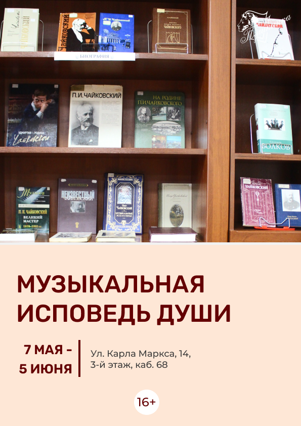 Книжная выставка посвящена 185-летию со дня рождения Петра Чайковского — выдающегося композитора эпохи романтизма, чье творчество стало частью мировой музыкальной культуры.
