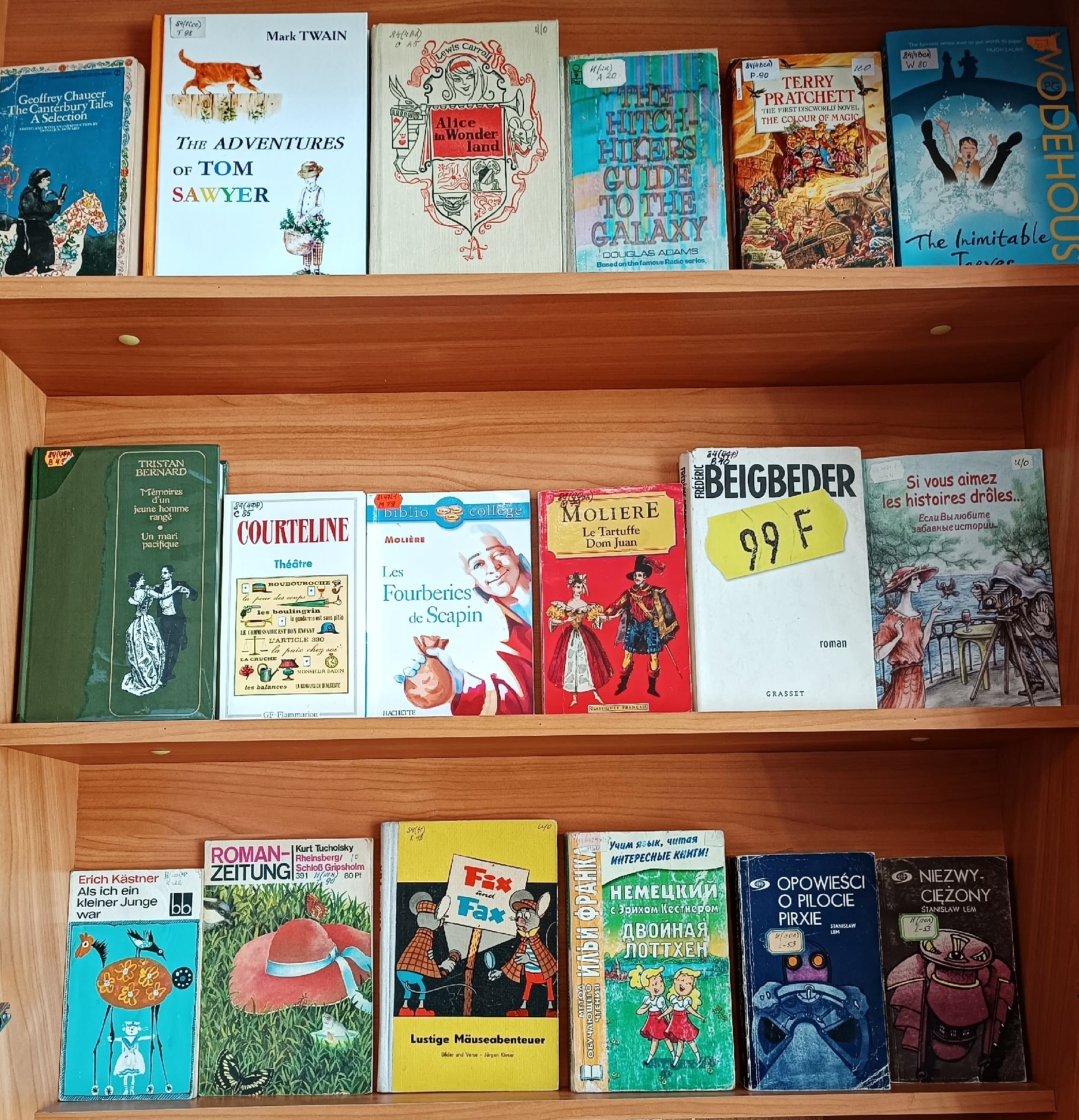 Представленные в экспозиции оригинальные книги на английском, французском, немецком, итальянском, испанском, польском, чешском, китайском, турецком, болгарском, иврите, марийском, шведском, нидерландском и других языках позволяют оценить теряющуюся в переводах игру слов.