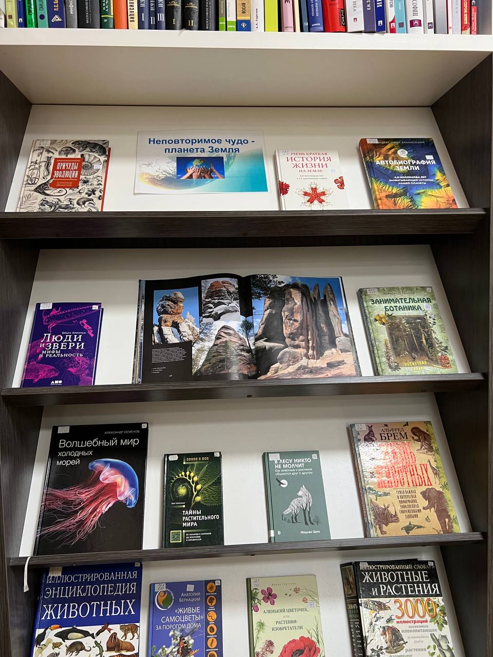 На выставке представлены красочные энциклопедии книги, фотоальбомы, рассказывающие о происхождении планеты Земля, о ее тайнах и загадках, о ее животном мире и др. На выставке экспонируются издания, написанные доступным языком и рассказывающие просто и с юмором о сложных вещах.
