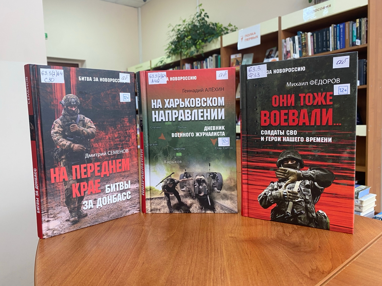 В подборке книг очевидцы и участники описываемых событий рассказывают о становлении характеров бойцов, о жизни героев, о мирном населении в освобожденных районах и о многом другом, связанном с СВО. Среди них — «Краматорские тетради» А. А. Сурнина, «Город под прицелом» А. Авраменкова, «Шебекенский дневник» И. Н. Пичугиной, «Будни фронтового автобуса» И. В. Карпенкова.